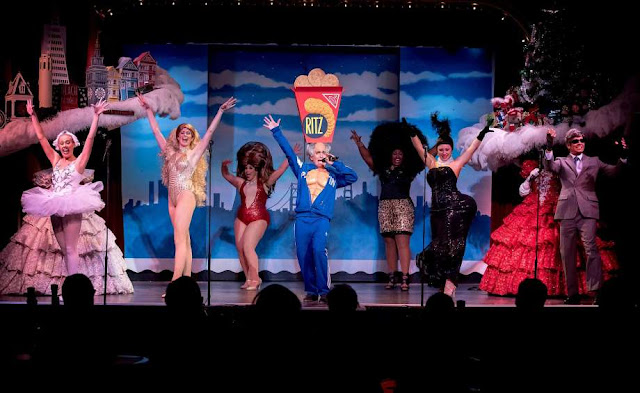 A proscenium view during the run of "Beach Blanket Babylon." Photographer: unknown